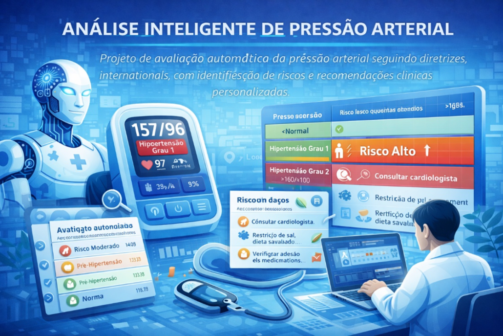 Projeto de avaliação automática da pressão arterial seguindo diretrizes internacionais, com identificação de riscos e recomendações clínicas personalizadas.